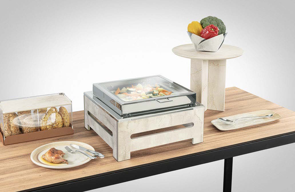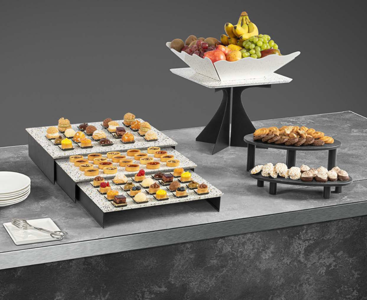 Combinando diverse altezze, materiali e finiture, i professionisti dell’ospitalità possono trasformare un semplice buffet in un’esperienza visiva memorabile.